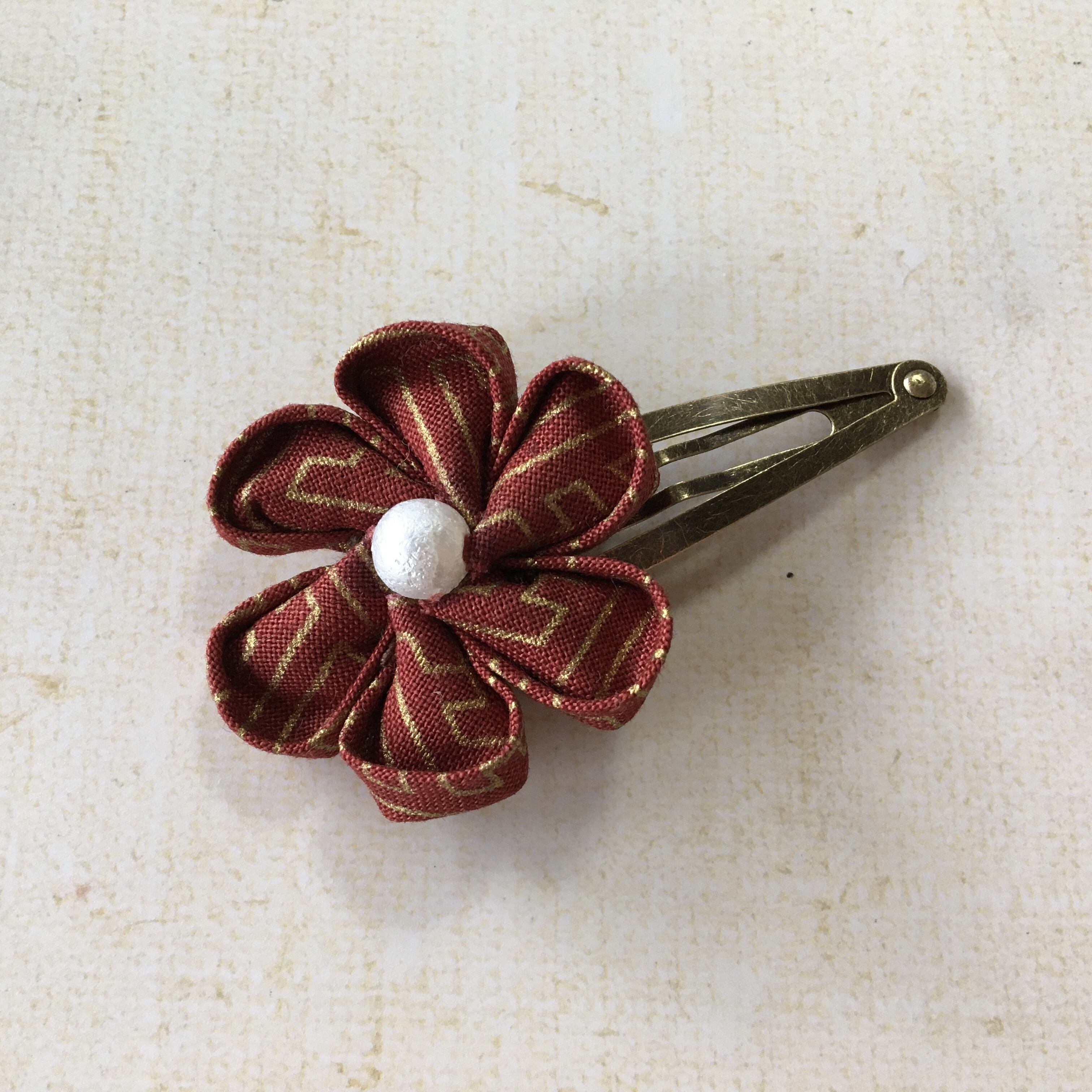 和風の伝統文様の布地を使ったお花の髪飾りです。