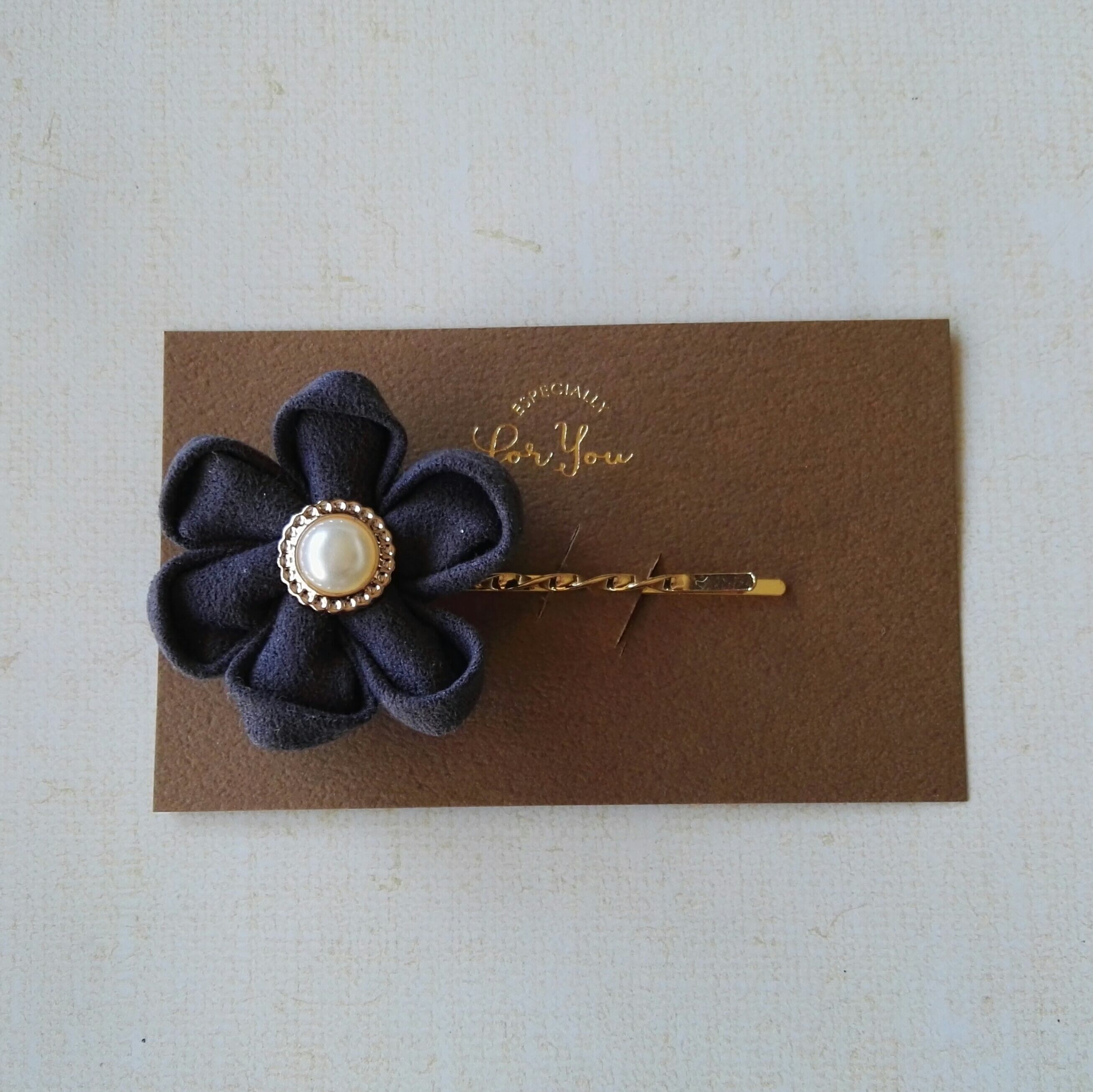 真ん中にビジューをあしらったお花のツイストヘアピンです。