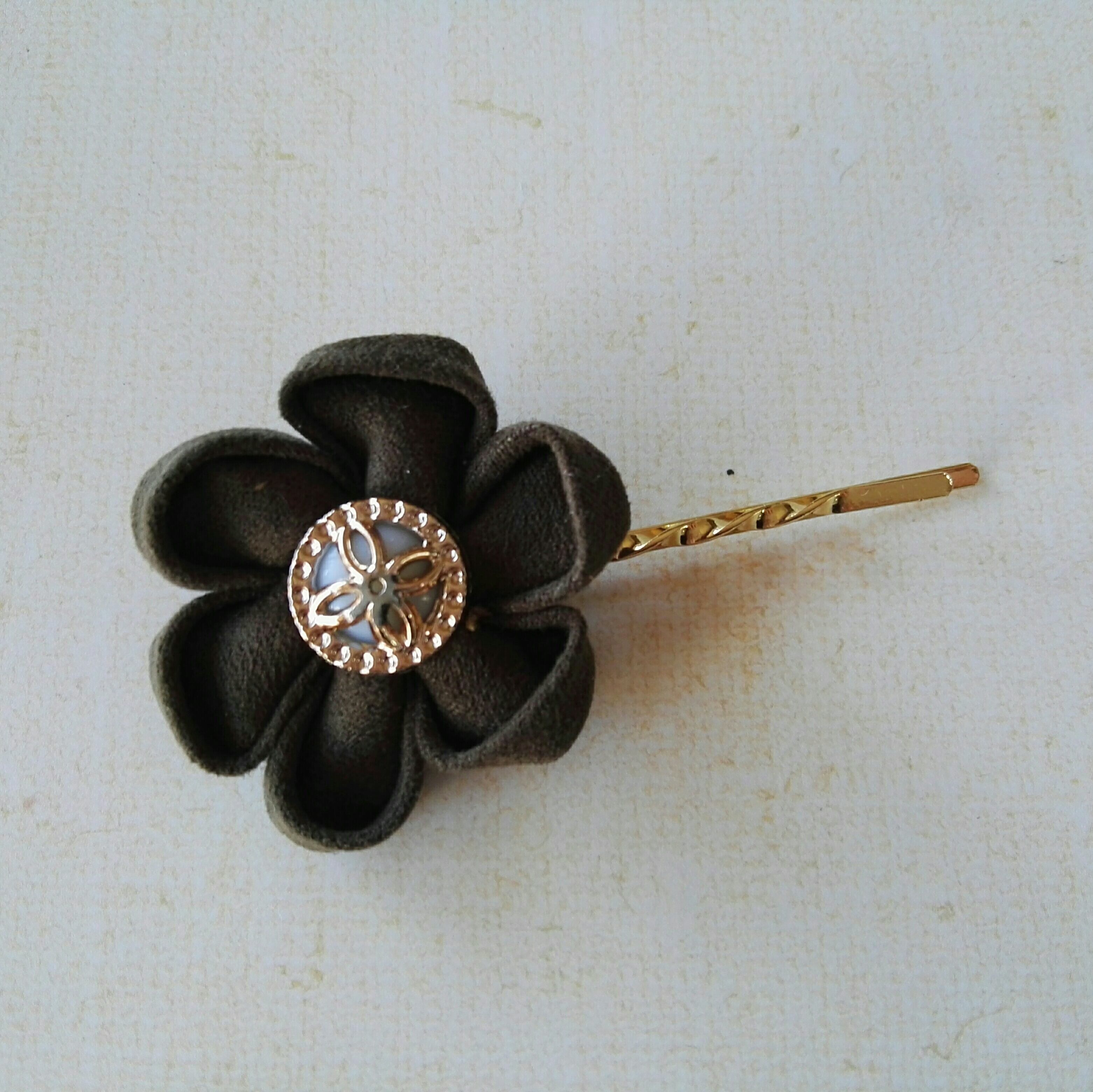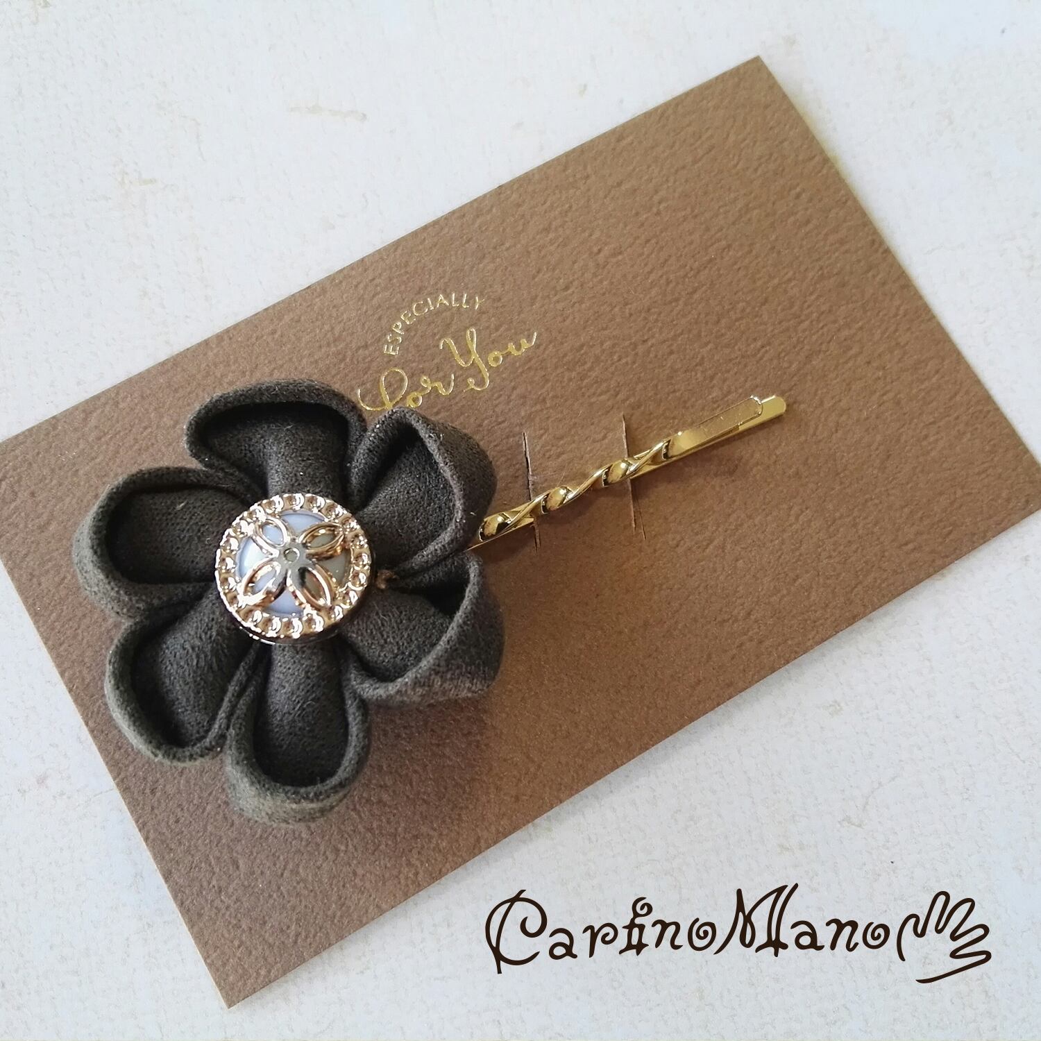 真ん中にビジューをあしらったお花のツイストヘアピンです。