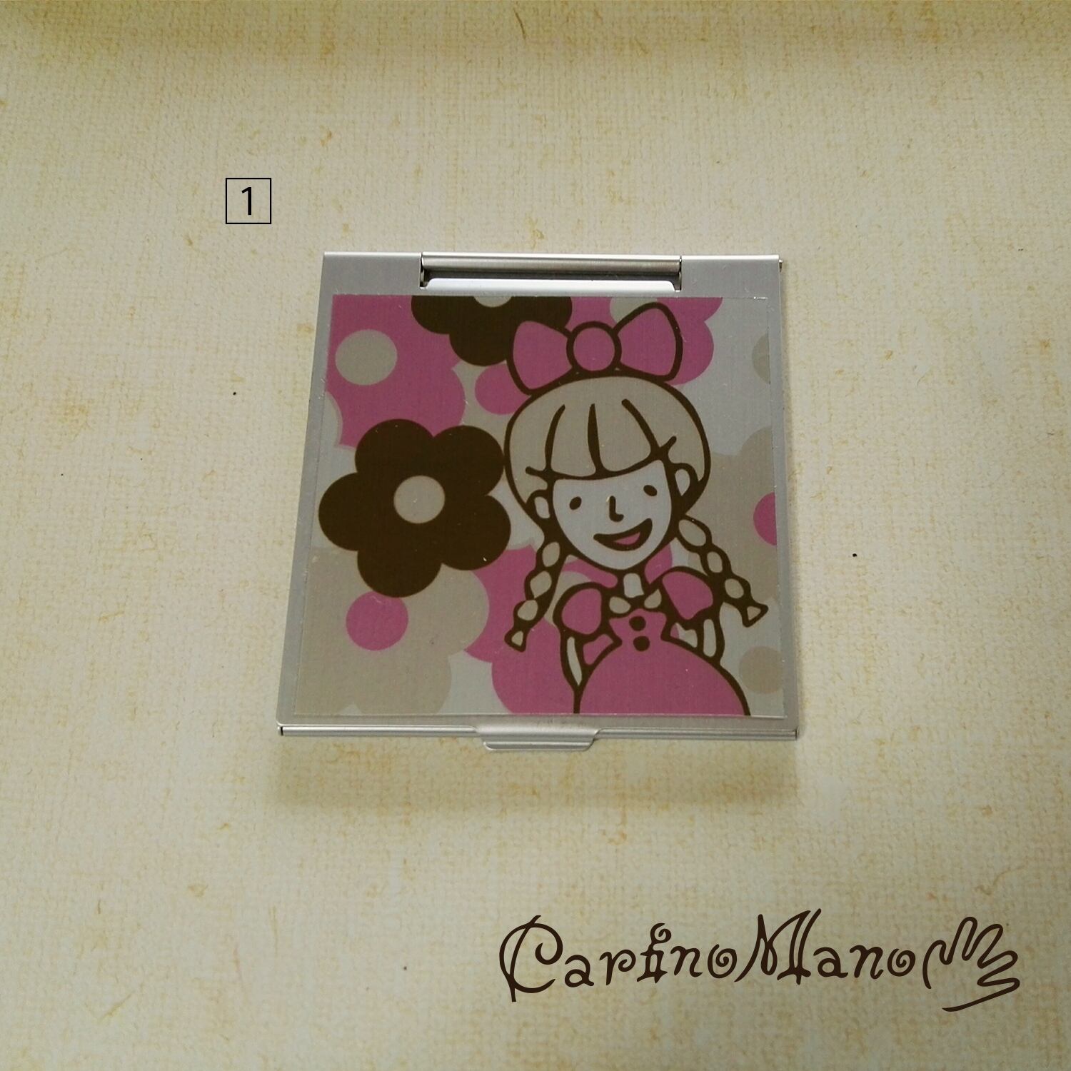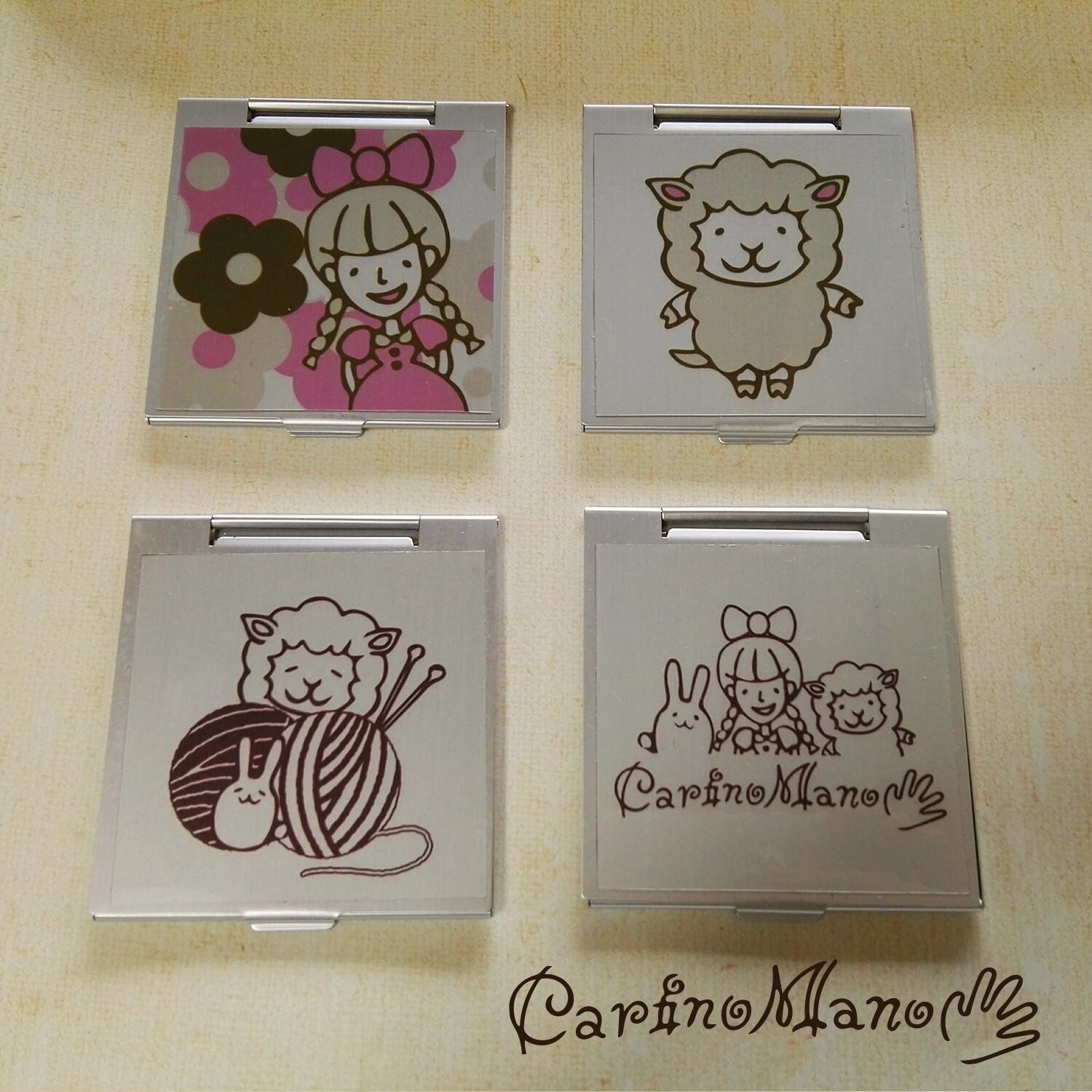 カリーノマーノのキャラクターが印刷されたコンパクトミラーです。 全4種類あります。